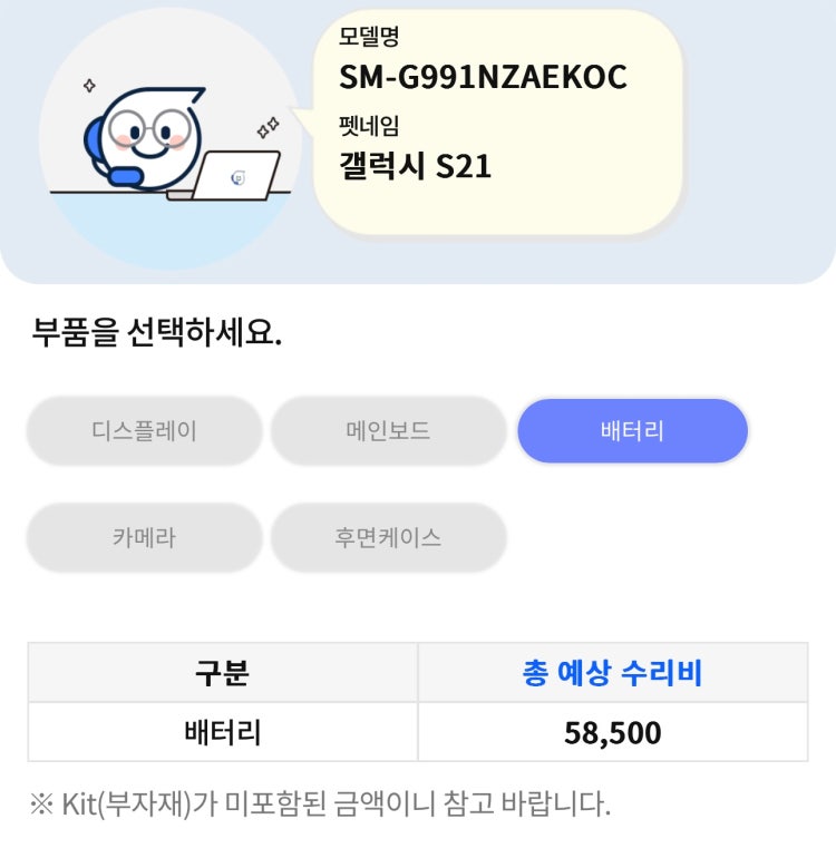 갤럭시 s21 배터리 교체비용 삼성 서비스센터가소 교체하려고 하는데 얼마정도 나올까요? 찾아보니까 어떤사람은 3만원대라고 하고